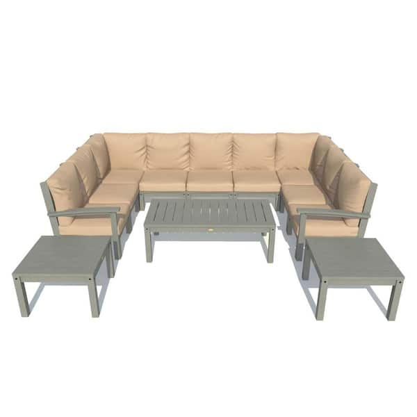 Bespoke Deep Seating 12-Piece Plastic Outdoor Sectional Set with Conversation Table and 2 Side Tables with Cushions