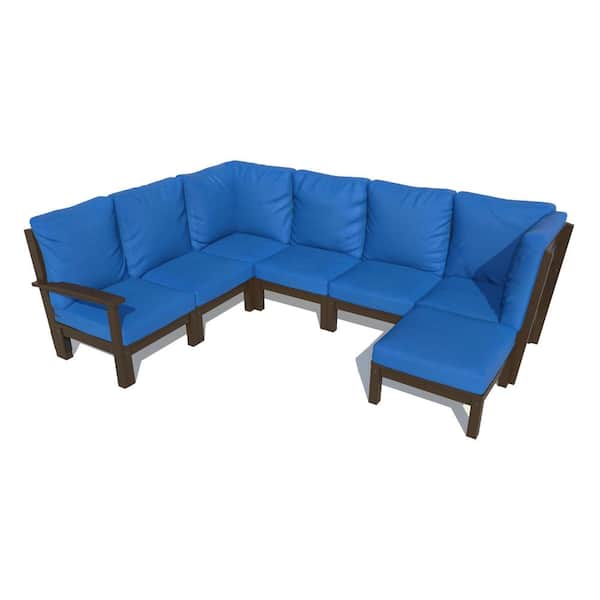 Bespoke Deep Seating 7-Piece Plastic Outdoor Sectional Set with Ottoman and with Cushions