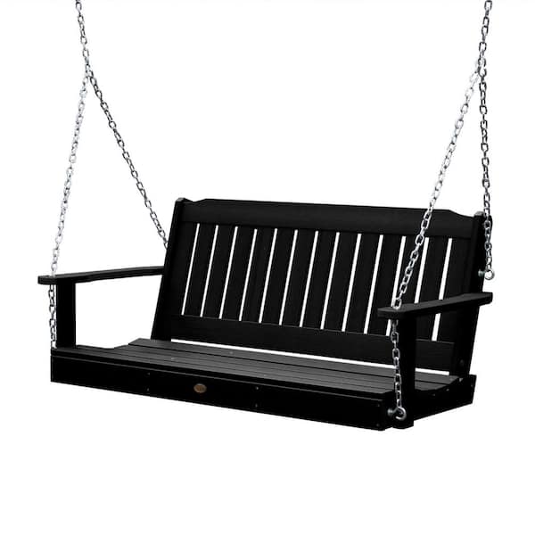 Lehigh 5 ft. 2-Person Black Recycled Plastic Porch Swing