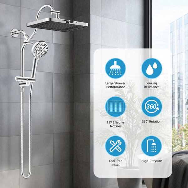 Easy Reach High Pressure 10-Spray 13 in. Wall Mount Dual Fixed and Handheld Shower Head 1.8 GPM in Chrome Finish