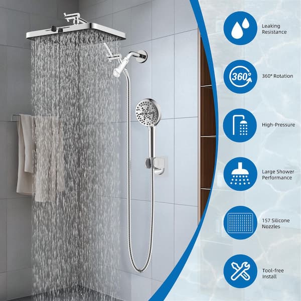 High Pressure 10-spray 13 in. Wall Mount Dual Fixed and Handheld Shower Head 1.8 GPM in Chrome Finish
