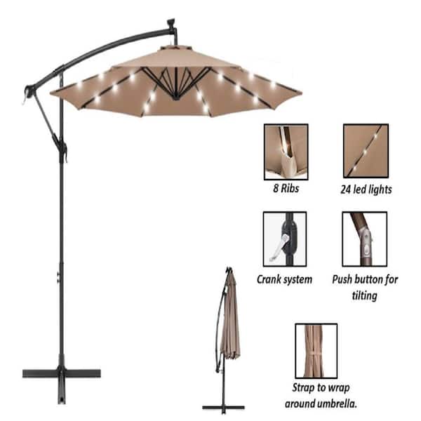 10 ft. Offset Cantilever Patio Umbrella with LED Lights in Tan with Cantilever Umbrella Base Set (4-Piece)