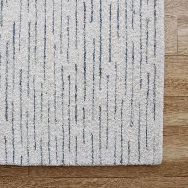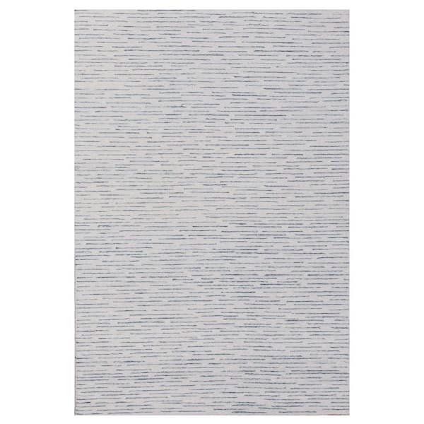 Hillah Modern Ivory/Blue 9 ft. x 12 ft. Striped Organic Wool Indoor Area Rug