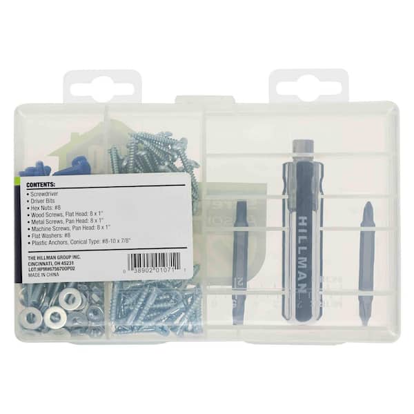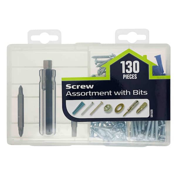 Zinc Screw Assortment with Bits Assorted Kit (130-Pack)