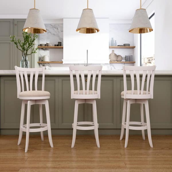 Savana 43.5 in. White High Back Wood 30 in. Bar Height Swivel Stool with Fabric