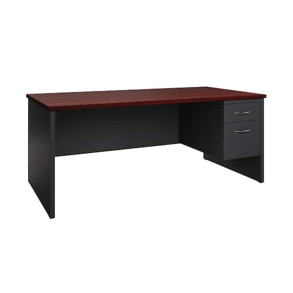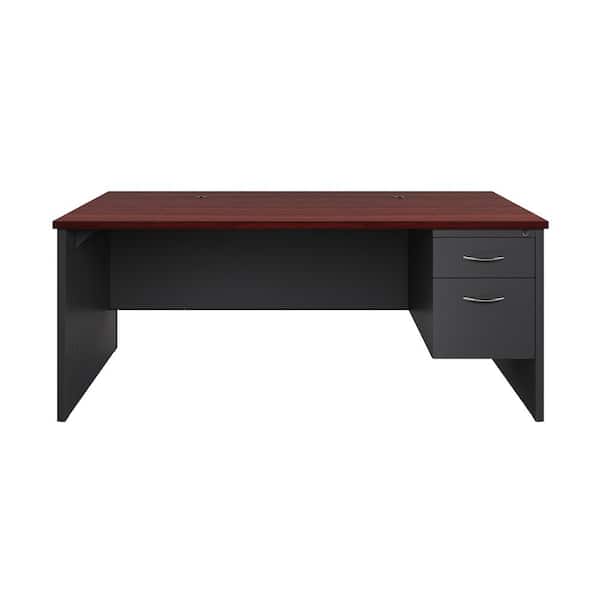 72 in. W x 36 in. D Charcoal/Mahogany Executive Office Modular Right-Hand Single Pedestal File Office Desk, Arch Pull