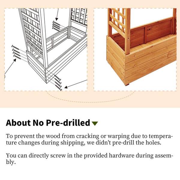 Raised Garden Bed with Trellis, Wood Planter Box with Roof for Climbing Plant and Pot Hanging, Outdoor Patio Balcony