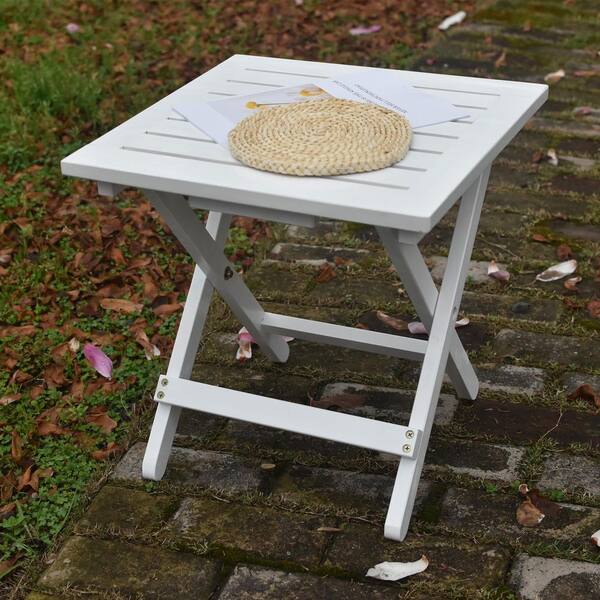 White Wood Folding Patio Side Table Outdoor Small End Portable Table for Porch, Yard, Garden (2-Packs)
