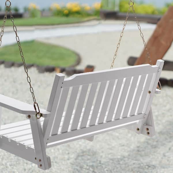 Wooden Porch Swing 2-Seater, Bench Swing with Hanging Chains, for Outdoor Patio Garden Yard, 4 Ft, White