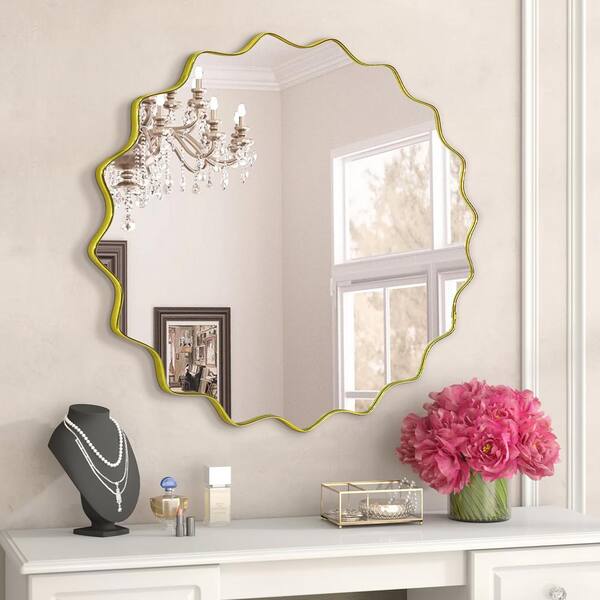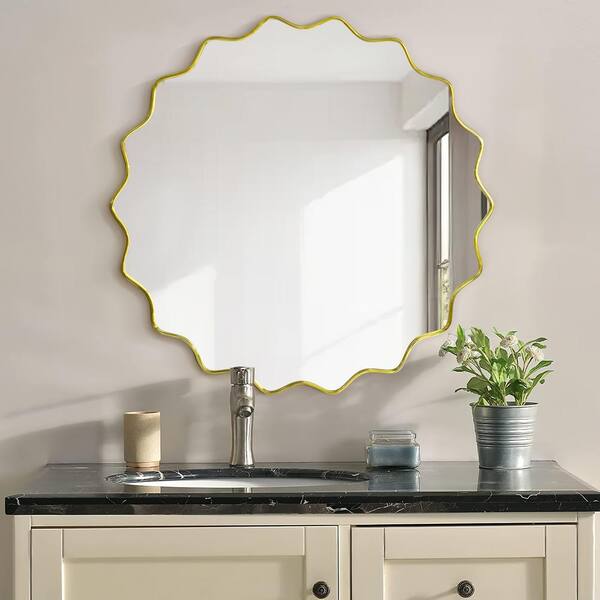 23.5 in. W x 23.5 in. H Round Sunburst Wall Mirror Scalloped Decorative Mirror Framed in Gold