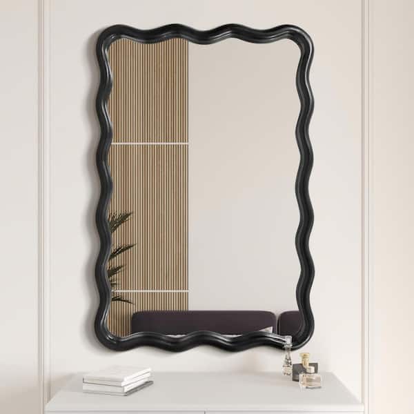 24 in. W x 36 in. H Rectangle Black Wood Framed Wavy Wall Mirror