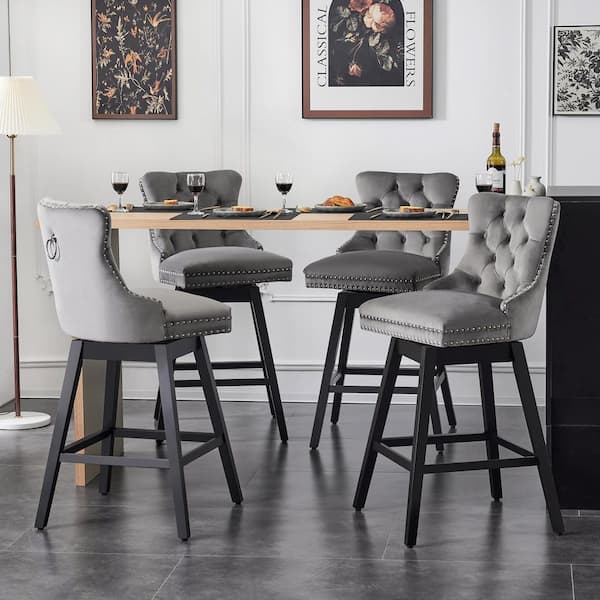 26 in. Gray Velvet Upholstered Solid Wood Frame Counter Height Bar Stool Swivel Counter Stool (Set of 4)