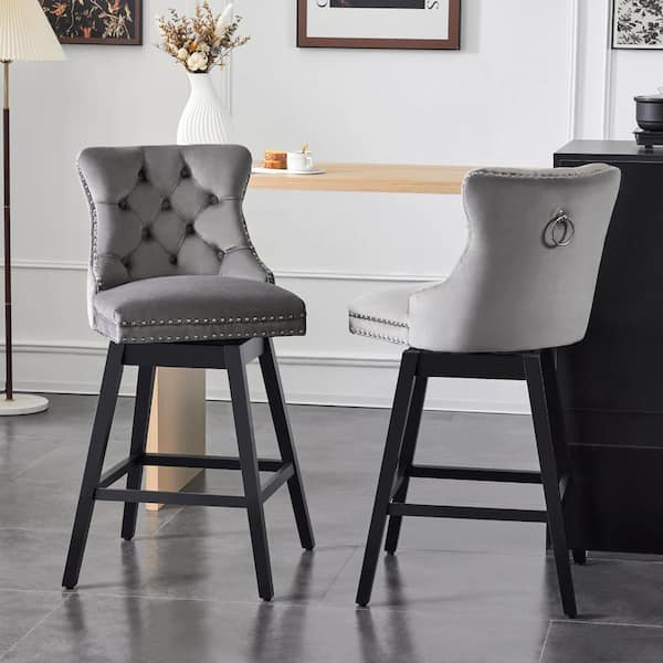 26 in. Gray Velvet Upholstered Solid Wood Frame Counter Height Bar Stool Swivel Counter Stool with Back (Set of 2)