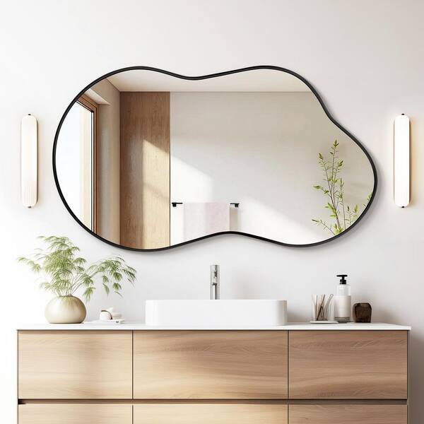 26 in. W x 46 in. H Asymmetrical Black Aluminum Alloy Framed Wall Mirror Irregular Wall Mirror