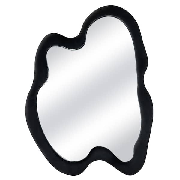 28 in. W x 36 in. H Irregular Black Flannelette Framed Wall Mirror Asymmetrical Decorative Wall Mirror