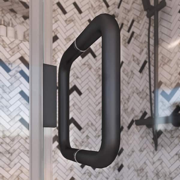 Distinctive Elite 43 in. W x 71.375 in. H Semi-Frameless Hinged Shower Door and Inline Panel in Matte Black