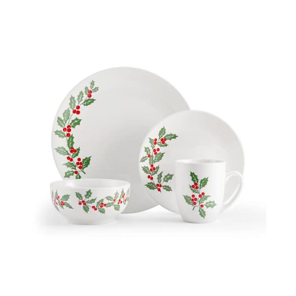 Holiday Cheer 16-Piece Multicolor Porcelain Dinnerware Set, Service for 4