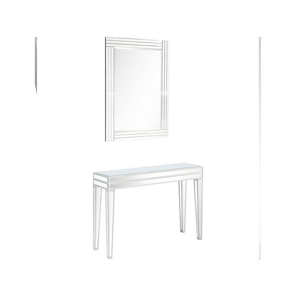 Holly 44 in. Clear Rectangle Glass Console Table with 41 in. Wall Mirror
