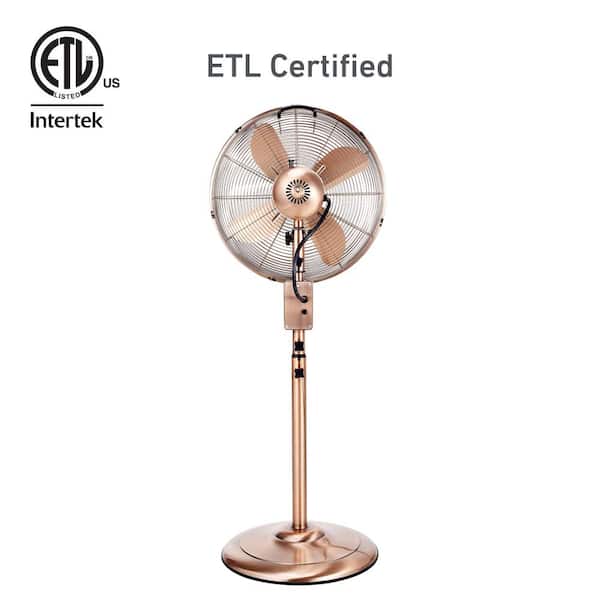 16 in. Digital Oscillating 3-Speed Metal Stand Fan with Remote Control Copper finish