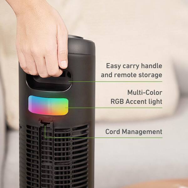 42 in. Oscillating 5 Speed Digital Tower Fan Black with Built-In Accent Light, ClearRead Display and Remote Control