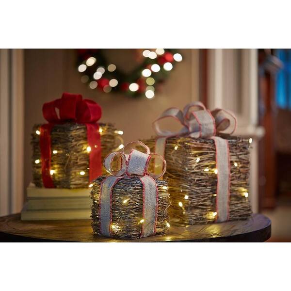 12.5 in. Pre-Lit Vine Gift Boxes (Set of 3)