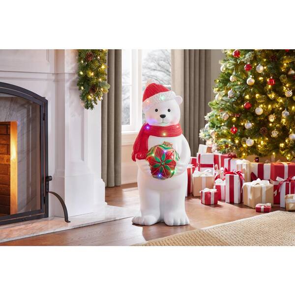 2.5ft LED Christmas Polar Bear Holding Ornament Standing Decor