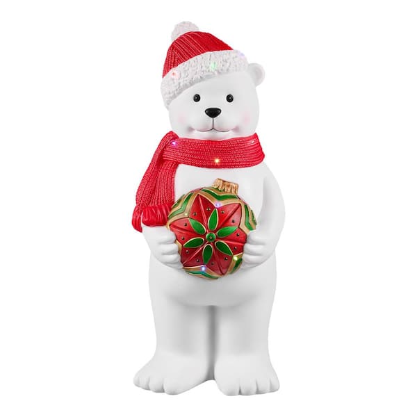 2.5-ft. standing polar bear figure holds an adorable ornament