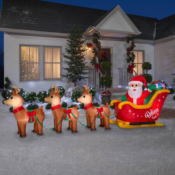 5 ft. H x 14 ft. L Airblown Inflatable Santa in Sleigh Scene