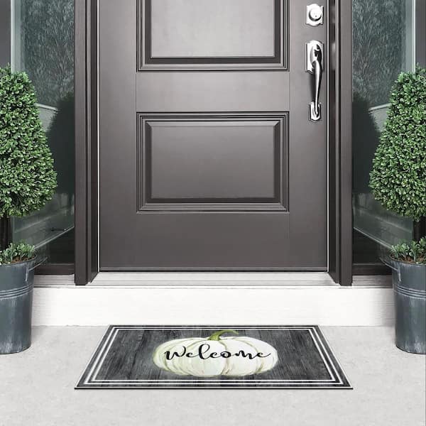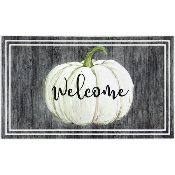 White Welcome Pumpkin 18 in. x 30 in. Doormat