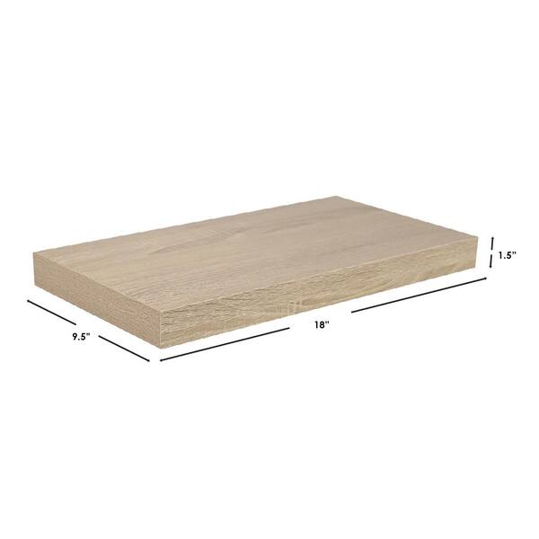 18 in. W x 9.50 in. D Oak MDF Floating Decorative Wall Shelf (3-Pack)