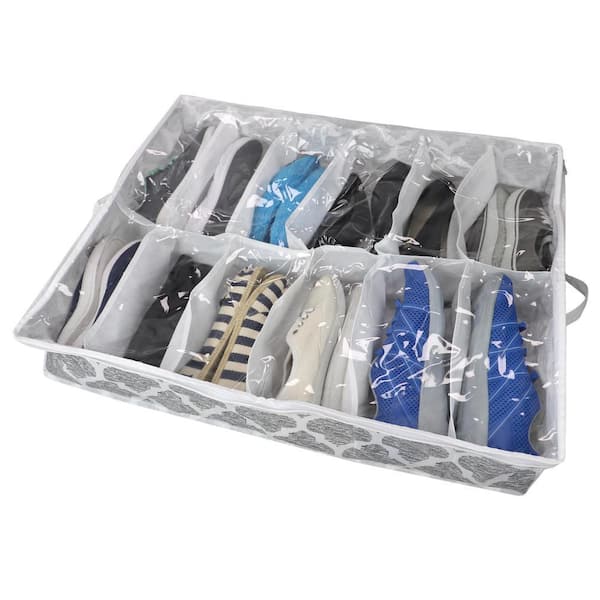 29.5 in. x 23.5 in. 12-Pair Grey Fabric Underbed Shoe Storage