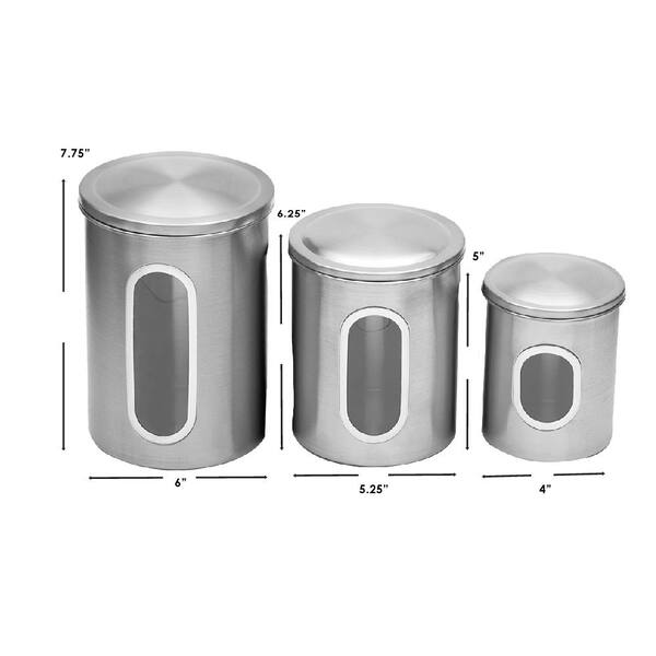 3 Piece Stainless Steel Top Canisters with Windows, Silver