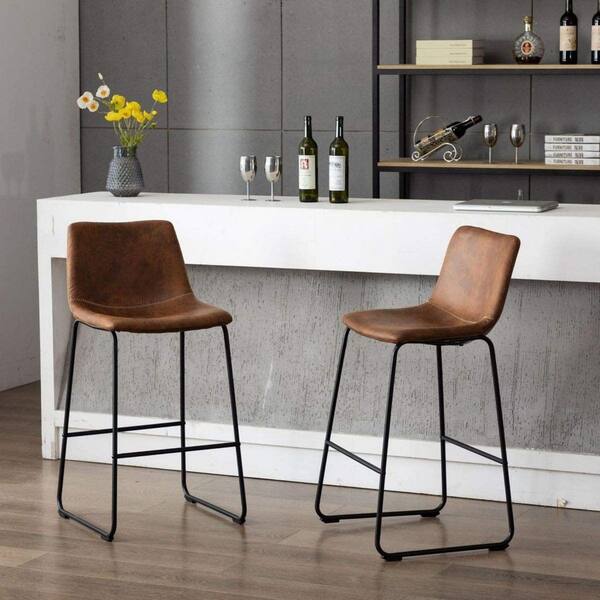 Clermont 39 in. Brown Upholstered Bar Stool (Set of 2)