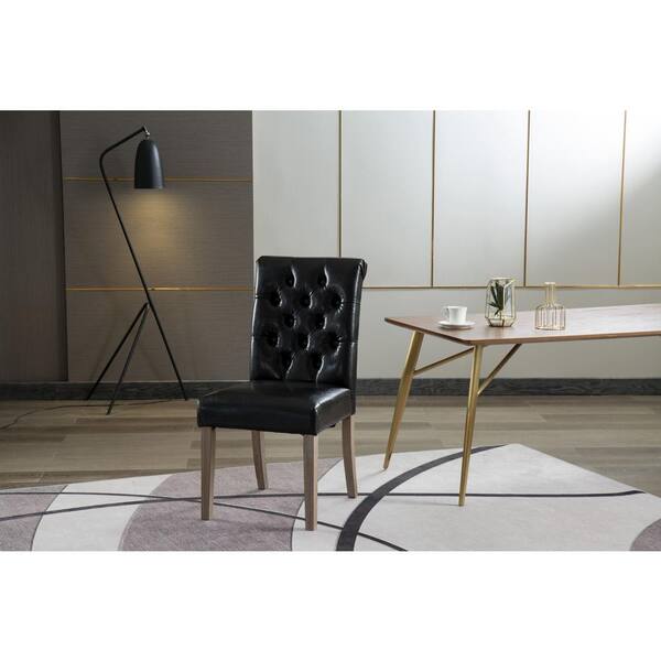 Valence Black Synthetic Leather Button Tufting Dining Accent Chair Set of 2