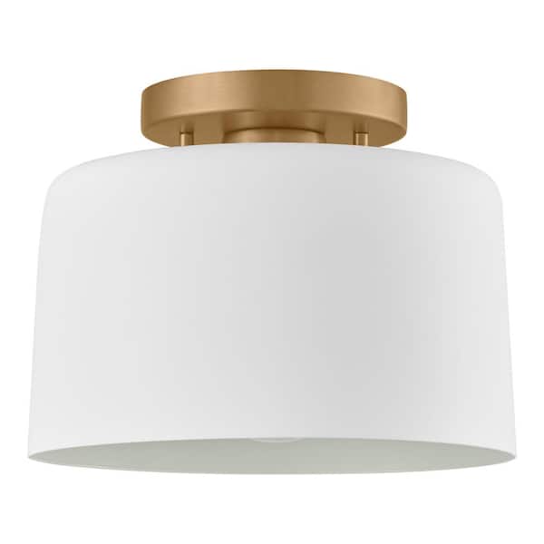 10 in. 1-Light Matte White and Gold Semi-Flush Mount