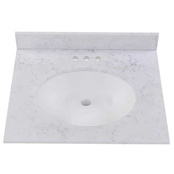 25 in. W x 22 in. D Cultured Marble White Round Single Sink Vanity Top in Pulsar