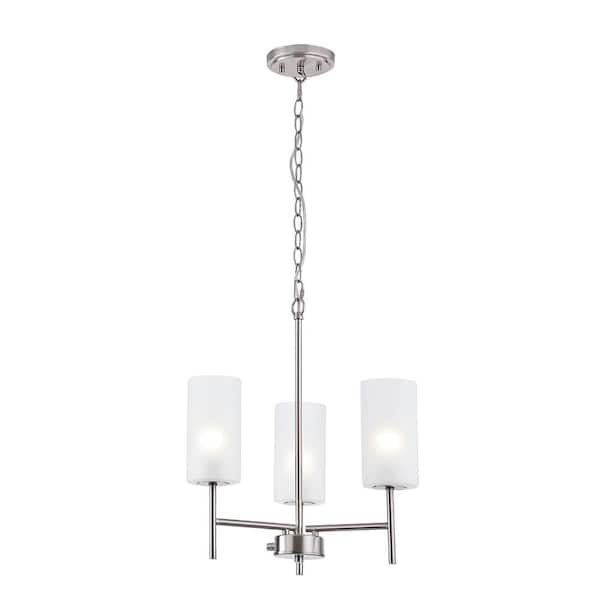 3 Light Modern Brushed Nickel Finish With Chandelier Glass Shades