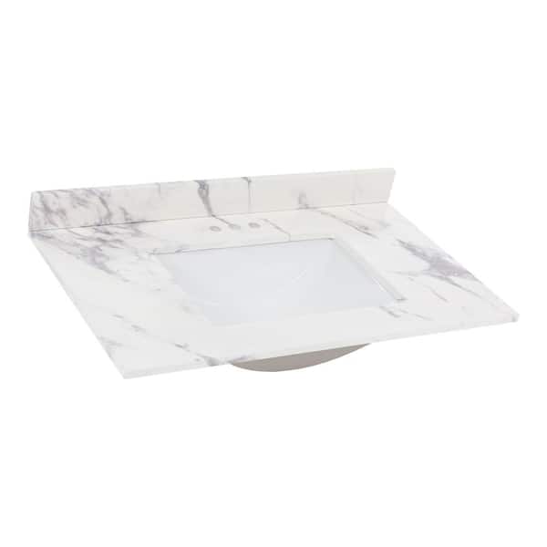 37 in. W x 22 in. D Engineered Stone Composite White Rectangular Undermount Single Sink Vanity Top in Toscana