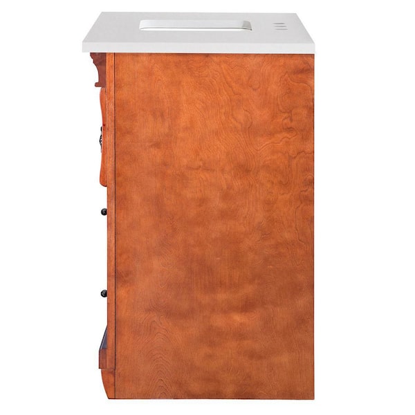 37 in. W x 22 in. D x 34.78 in. H Bath Vanity in Warm Cinnamon with Carrara White Marble Top