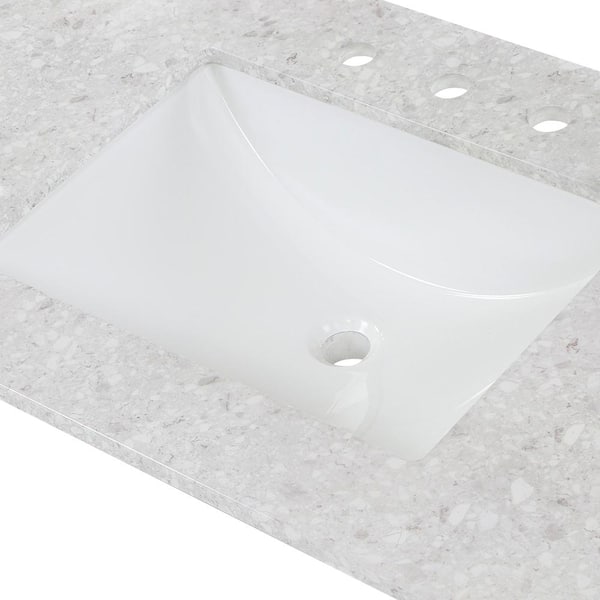 49 in. W x 22 in. D Engineered stone composite White Rectangular Single Sink Vanity Top in River Stone