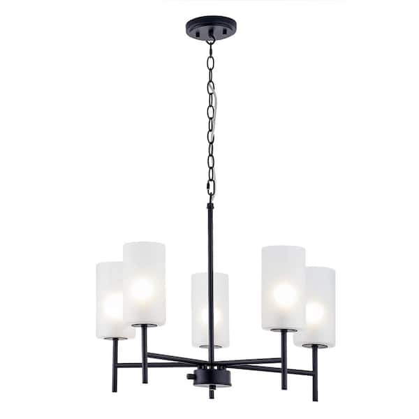 5 Light Matte Black Finish Chandelier With Glass Shades