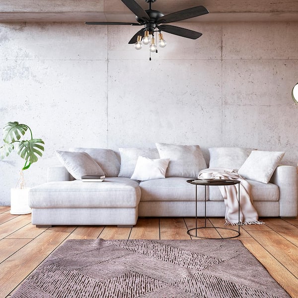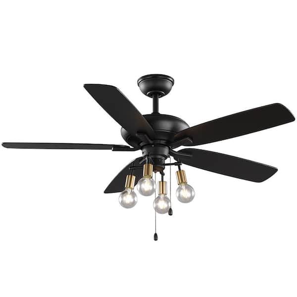 52 in. Bay City Indoor LED Matte Black with Brass Accents Dry Rated Ceiling Fan with Light Kit and 5 Reversible Blades
