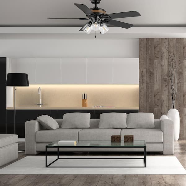 52 in. Sederio Indoor Matte Black LED Ceiling Fan with Light Kit
