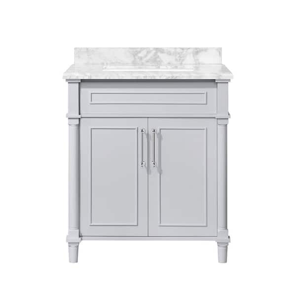 Aberdeen 30 in. Single Sink Dove Gray Bath Vanity with Carrara Marble Top (Assembled)