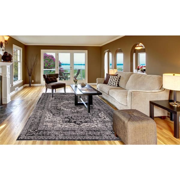 Angora Anthracite 9 ft. x 13 ft. Medallion Area Rug