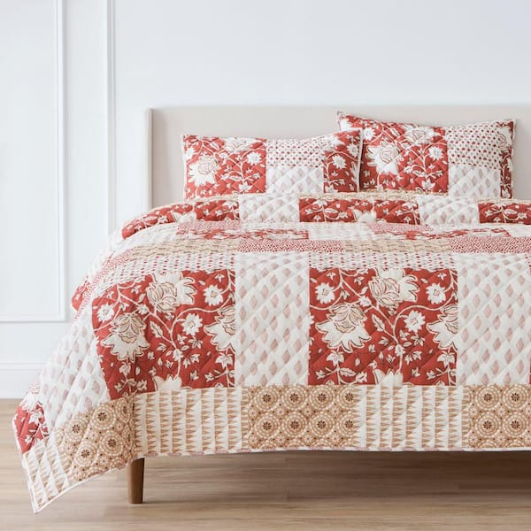 Ansley 3-Piece Paprika Multi Patchwork King Cotton Quilt Set