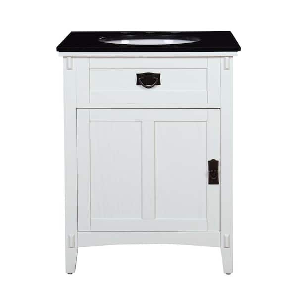 Artisan 26 in. Single Sink White Bath Vanity with Black Marble Top (Assembled)