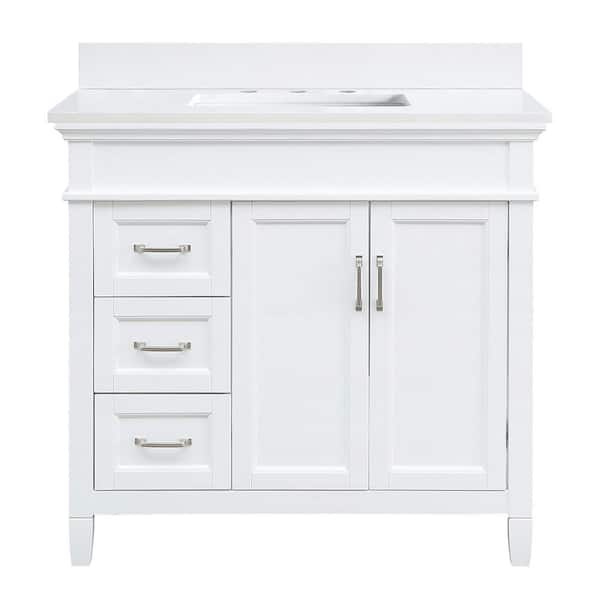 Ashburn 37 in. W x 22 in. D Bath Vanity in White with White Quartz Top DL