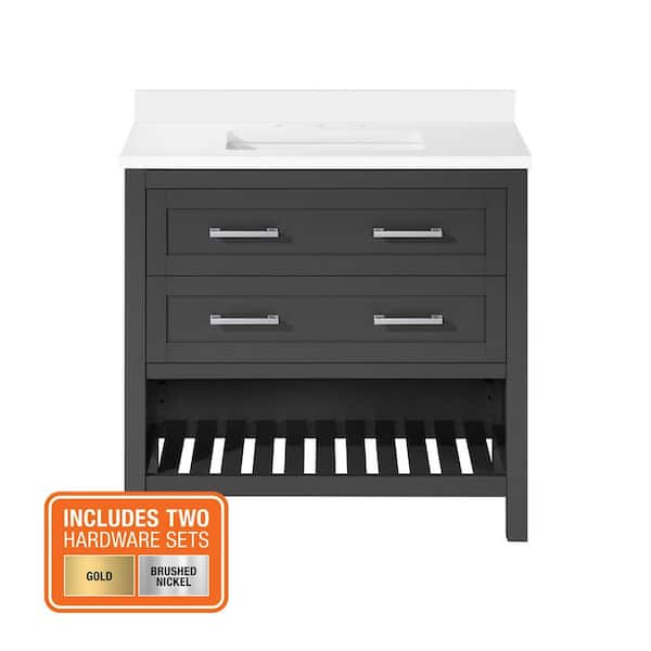• 36 in W x 19 in D x 34.5 in H vanity with an engineered stone top