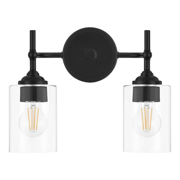 Ayelen 13.5 in. 2-Light Matte Black Bathroom Vanity Light with Clear Glass Shades